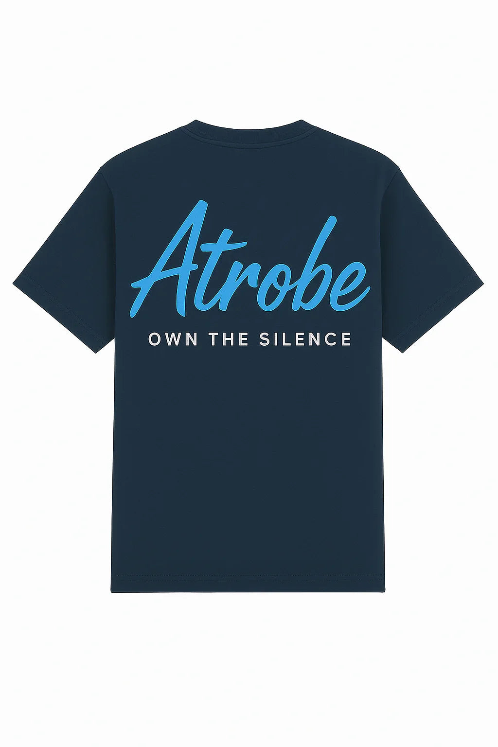 De voorzijde is subtiel afgewerkt met het elegante Atrobe logo op de borst, terwijl de achterzijde kracht uitstraalt met de opvallende slogan: "OWN THE SILENCE"  een statement dat stijl en zelfvertrouwen uitstraalt.